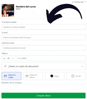 Además, seguido de esto encontrarás un botón para poder inscribirte, ahí te aparecerá el método de pago disponible en tu país y solo tienes que seguir los pasos, por favor no olvides de colocar bien tu correo ya que allí te llegará el acceso a la formación